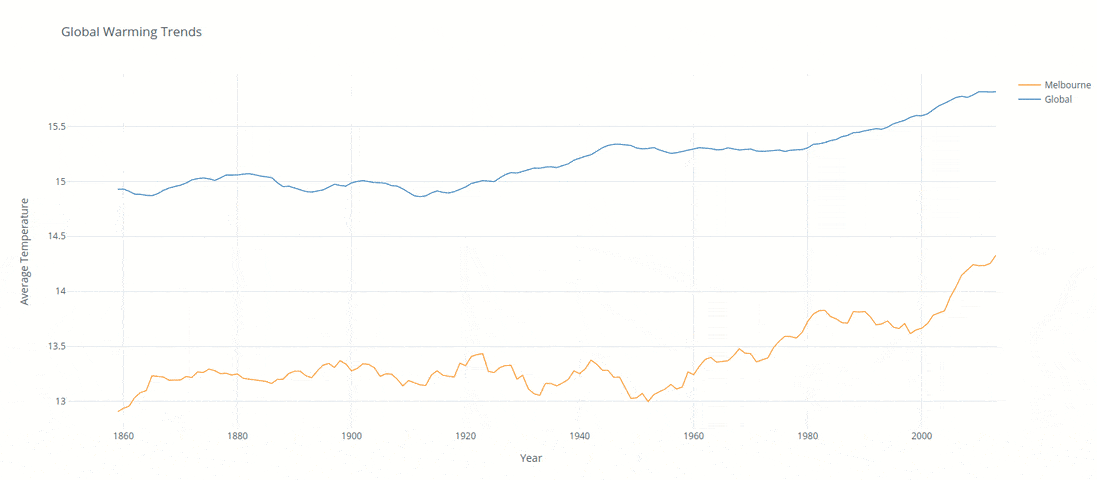 The below analysis was created to compare local and global temperature data sets and the temperature trends between Melbournne Australia to the overall global temperature trends.