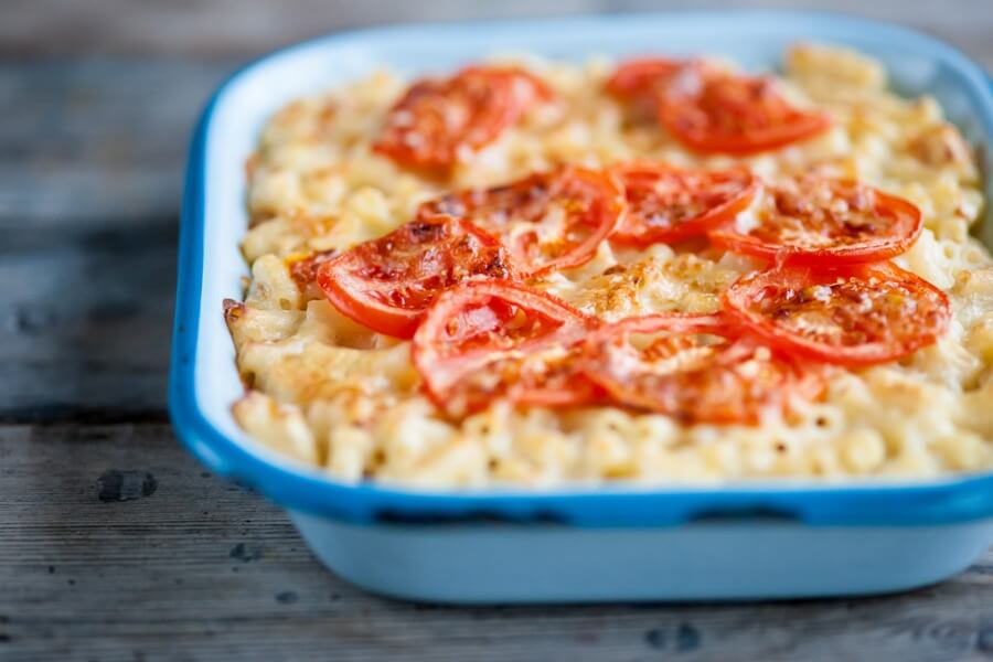 Tip the macaroni cheese into the dish, scatter over the breadcrumbs and lay the tomatoes casually over the top. Heat through in the oven for 12-15 mins until beginning to bubble around the edges. Grill for 3-5 mins to brown the crumbs. Let it all settle for 1-2 mins, then serve while still piping hot.