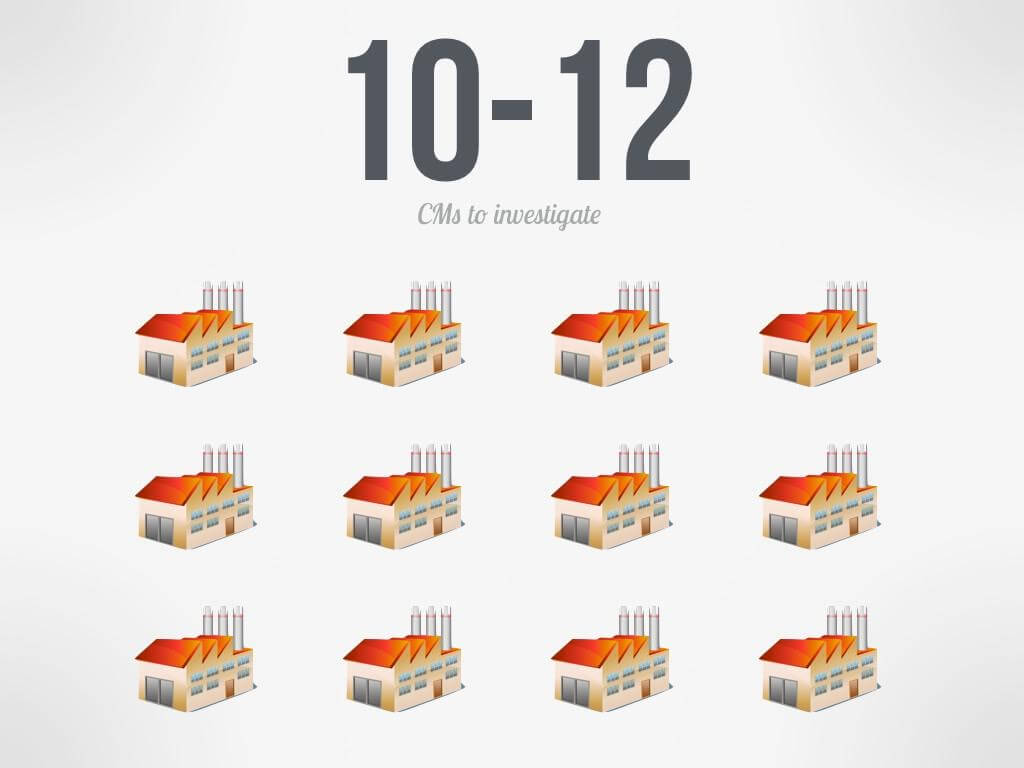 Finding the right CM is like finding the right spouse or co-founder. In order to pick the right one, you have to start with a large number. We usually suggest 10–12. These should be selected from a list of CMs that have built similar products (i.e. if you have a product with a lens in it, you should talk to CMs that make cameras). Look for other products they’ve built and talk to the COOs or CEOs of those companies. How were the companies treated? What was the cost/quality/schedule of their CM versus the others they looked at? What happened when there was a problem?