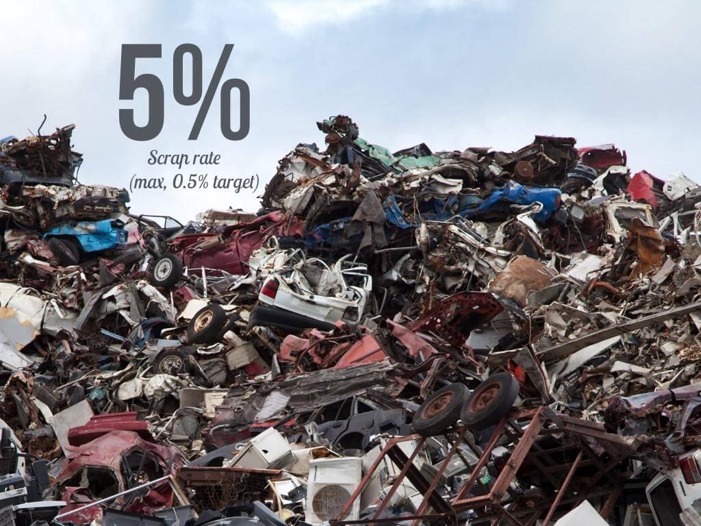 No one is perfect. Manufacturing is complex so things inevitably go wrong. A small portion of complete products are usually thrown away during manufacturing, especially in the beginning of the production cycle. Startups often see around 5% of the products ordered scrapped. This often goes down to around 0.5% after a few production/design cycles.